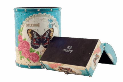 Misiny-Kelebek Desenli Deri Çöp Kutusu Seti