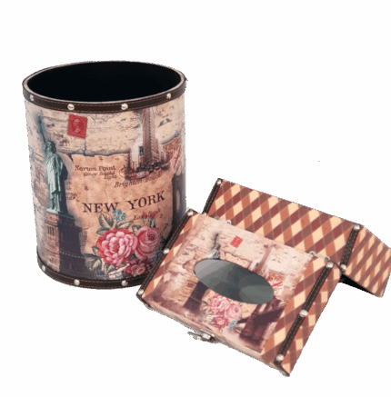Misiny-Nostalji Desenli Deri Çöp Kutusu Seti-011