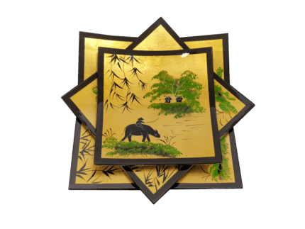 Misiny-Uzak Doğu El Boyama Sarı Tabak Seti -3’lü