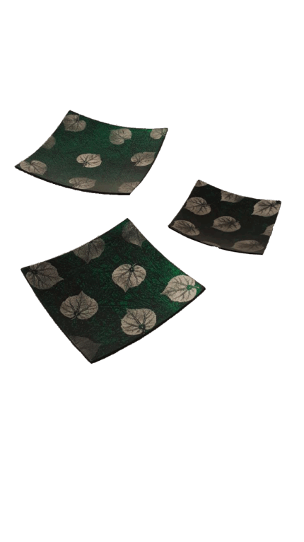 Misiny-Yeşil Yaprak Desen El Boyama Dekoratif Tabak Seti -3’lü