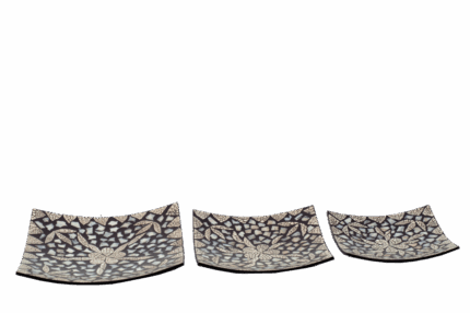 Misiny-Yumurta Kabuğu ve Sedef Kakma Çiçek Tabak Seti -3'lü
