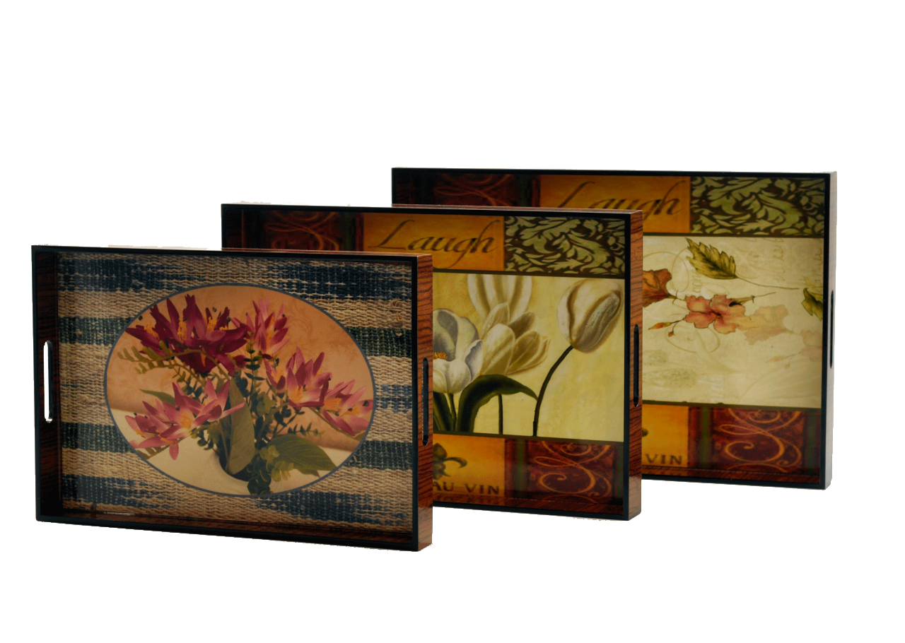 Misiny-Çiçek Desenli Ahşap Tepsi 3’lü Seti-003