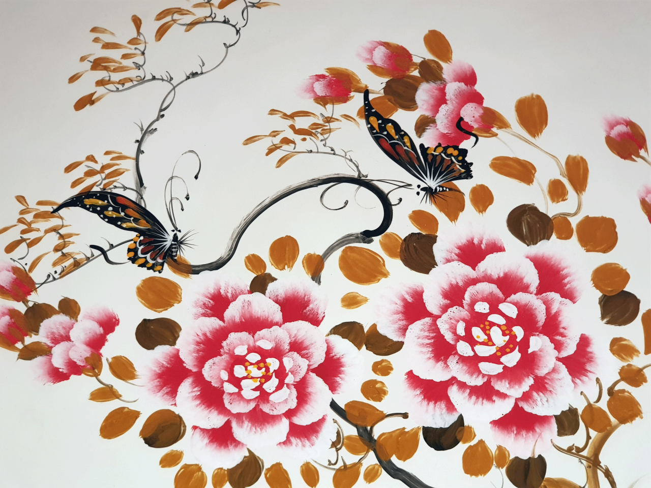 Ahşap Üzerine Lake Cilalı El Boyama Büyük Boy Tabak