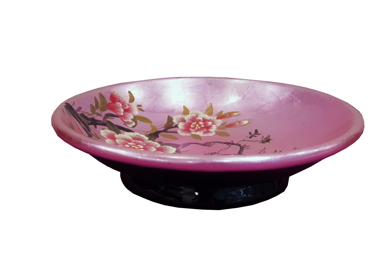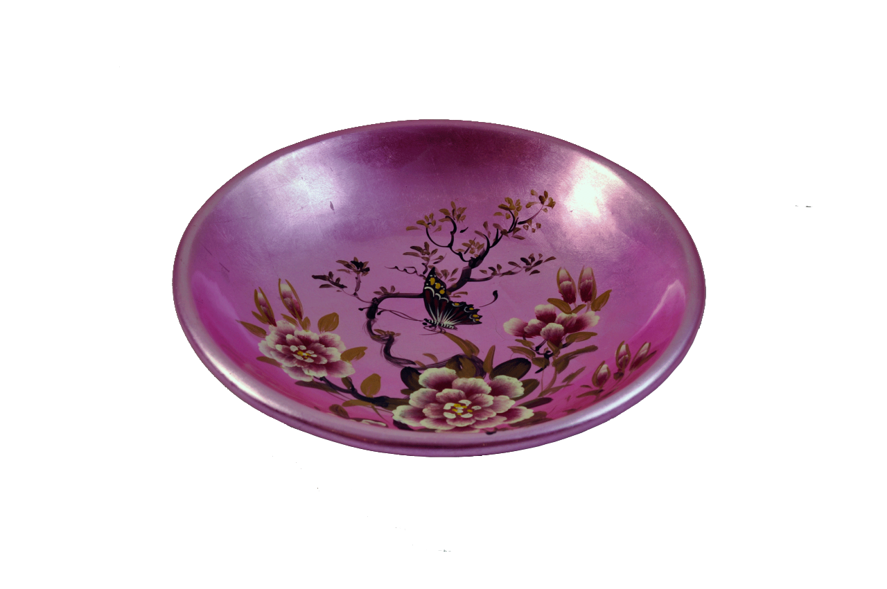 Ahşap Üzerine Lake Cilalı El Boyama Büyük Boy Tabak