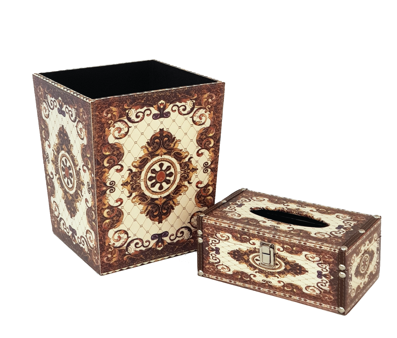 Misiny-Etnik Desenli Deri Çöp Kutusu Seti-027