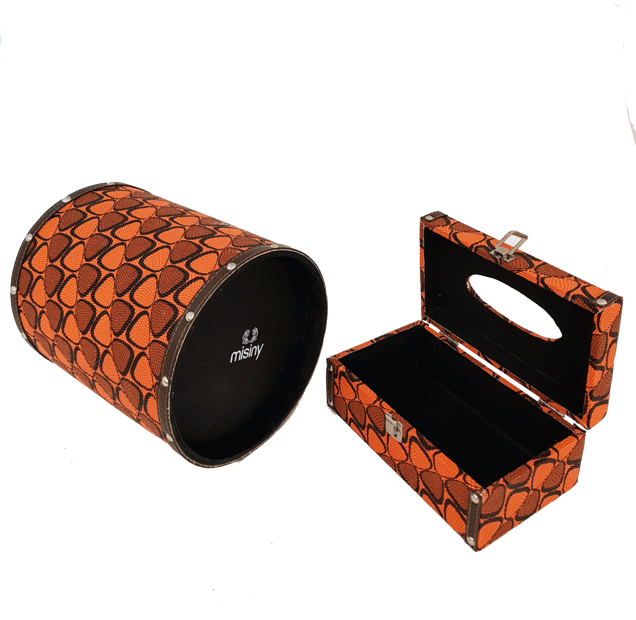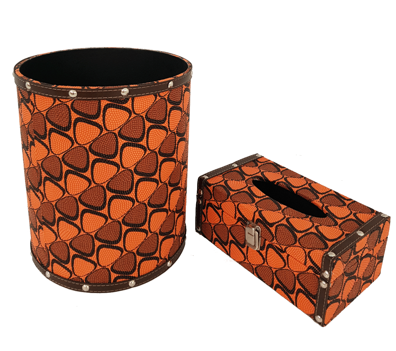 Misiny-Geometrik Desenli Deri Çöp Kutusu Seti-001