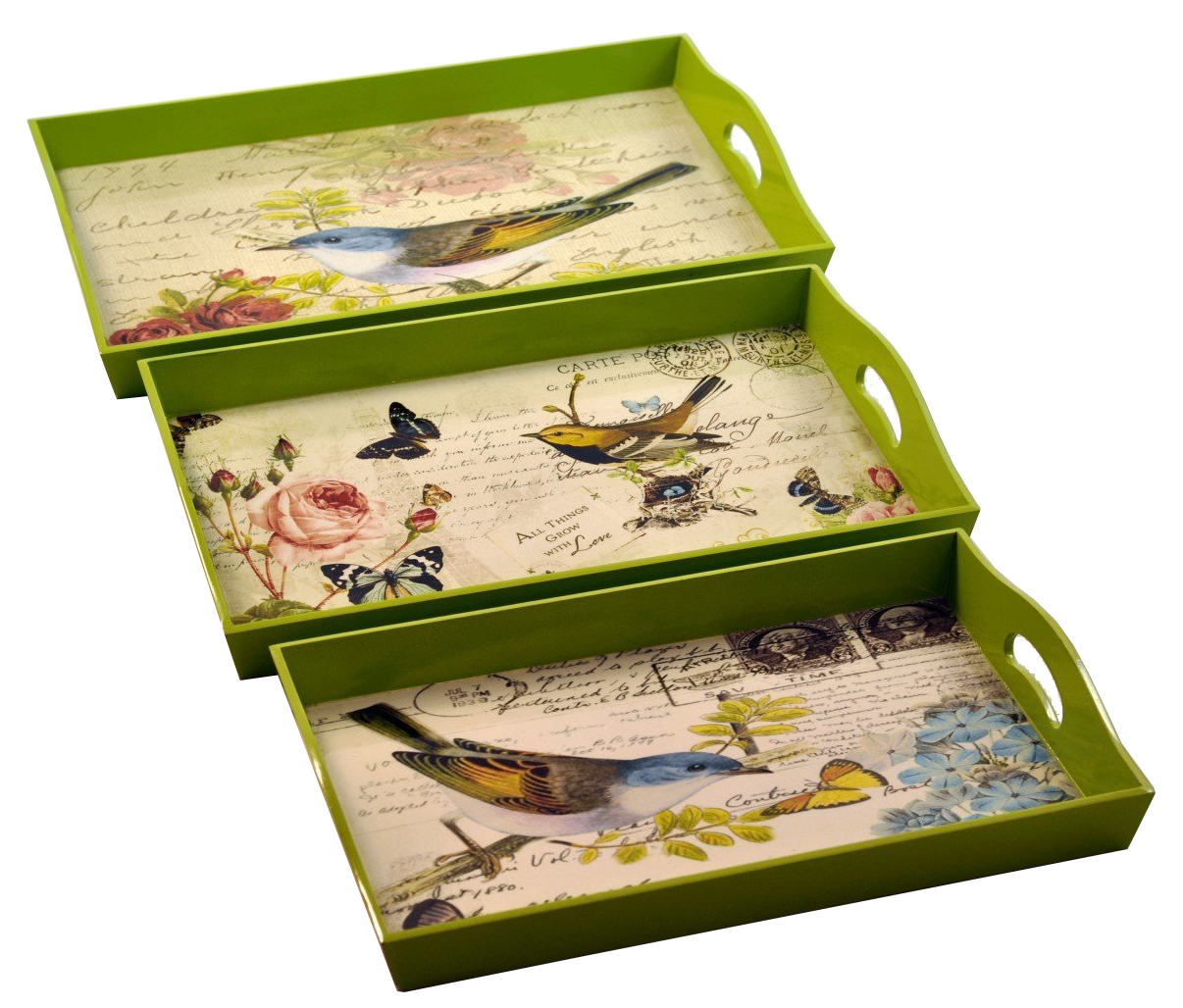 Misiny-Kuş Desenli Ahşap Tepsi 3’lü Seti-002