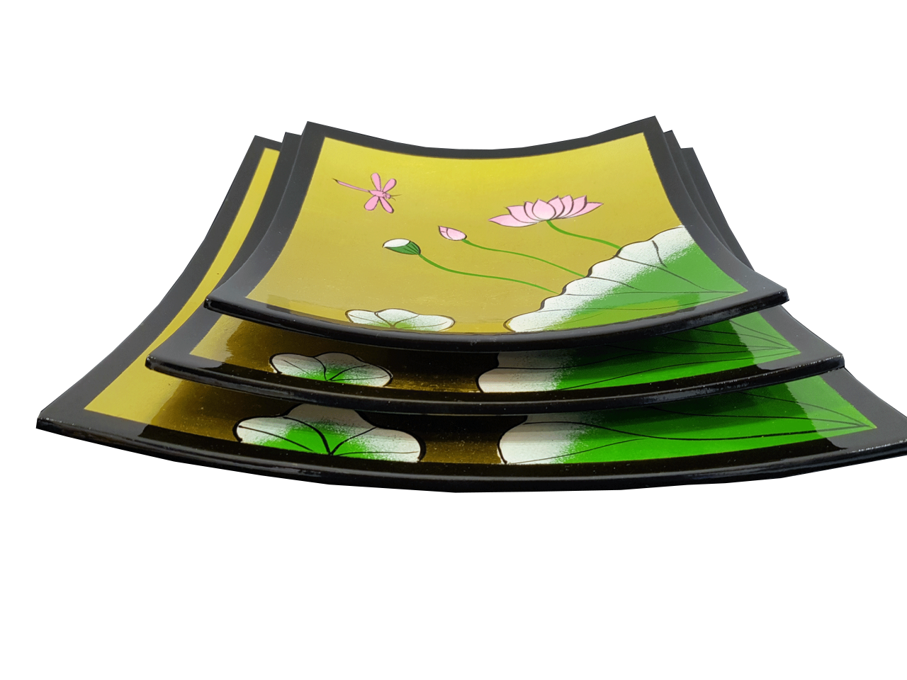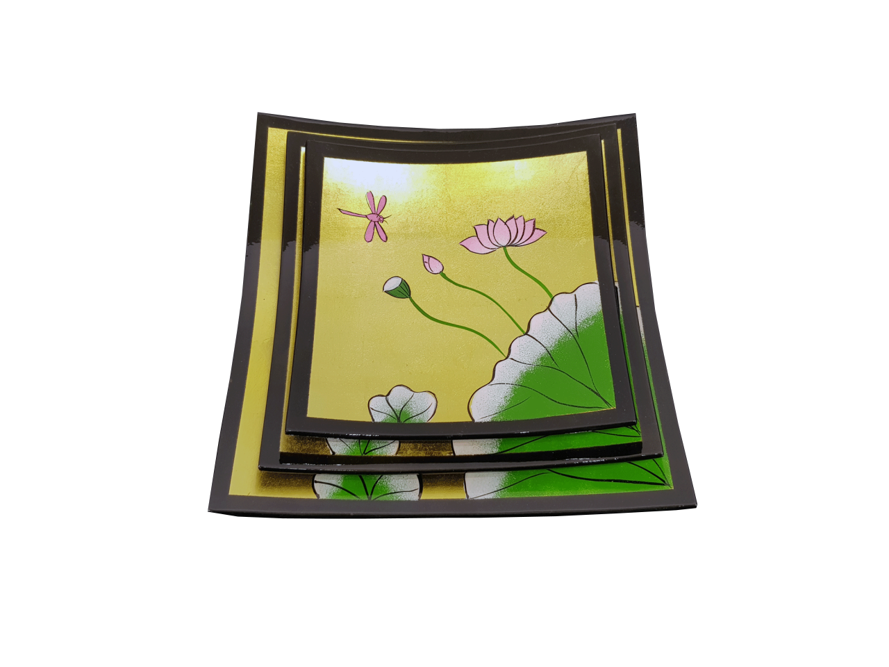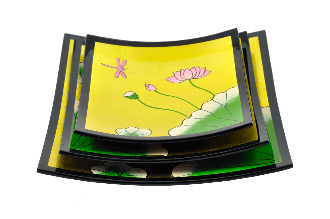 Misiny-Lotus Çiçeği El Boyama Dekoratif Tabak Seti -3’lü