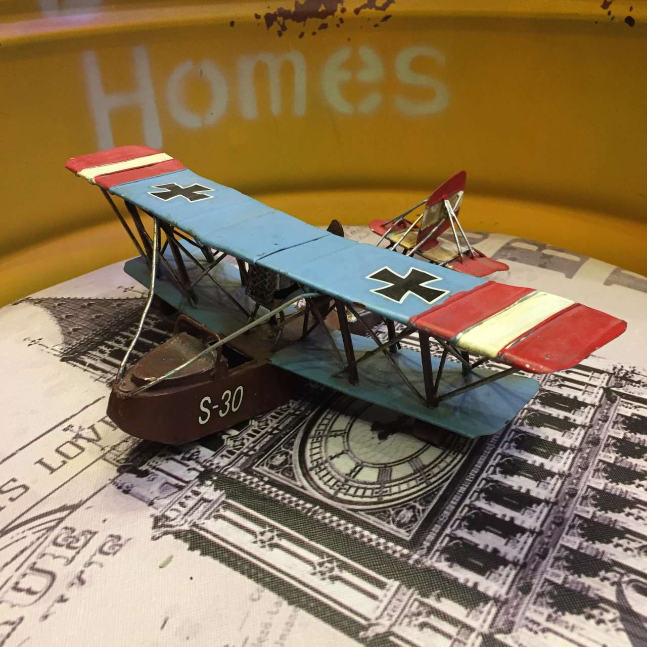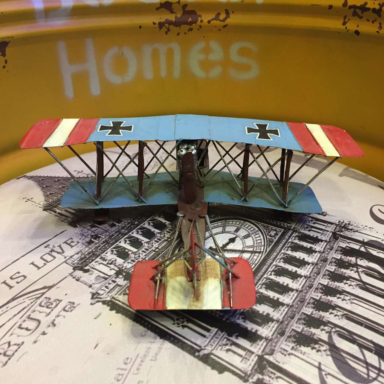 Misiny-Nostaljik Metal Mavi Kırmızı Uçak Maketi