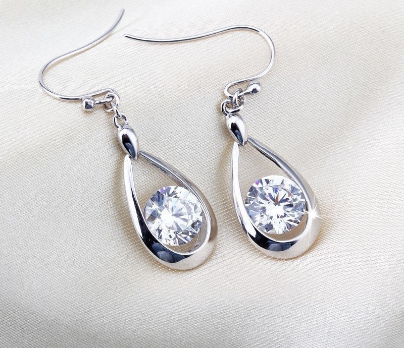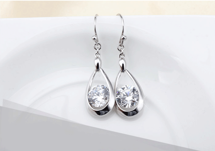 925 ayar gümüş üzeri swarovski taşlarla süslenmiş küpe.