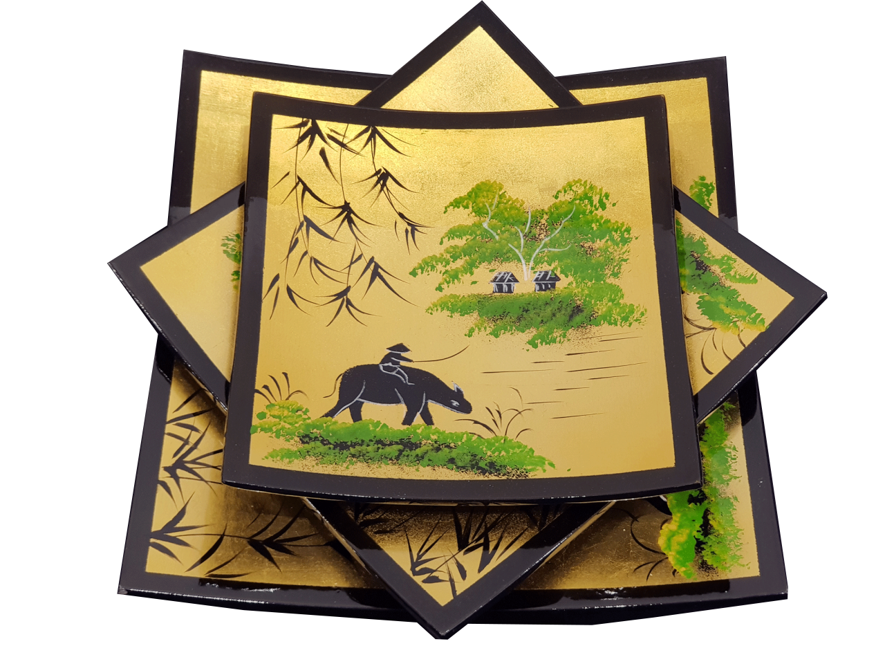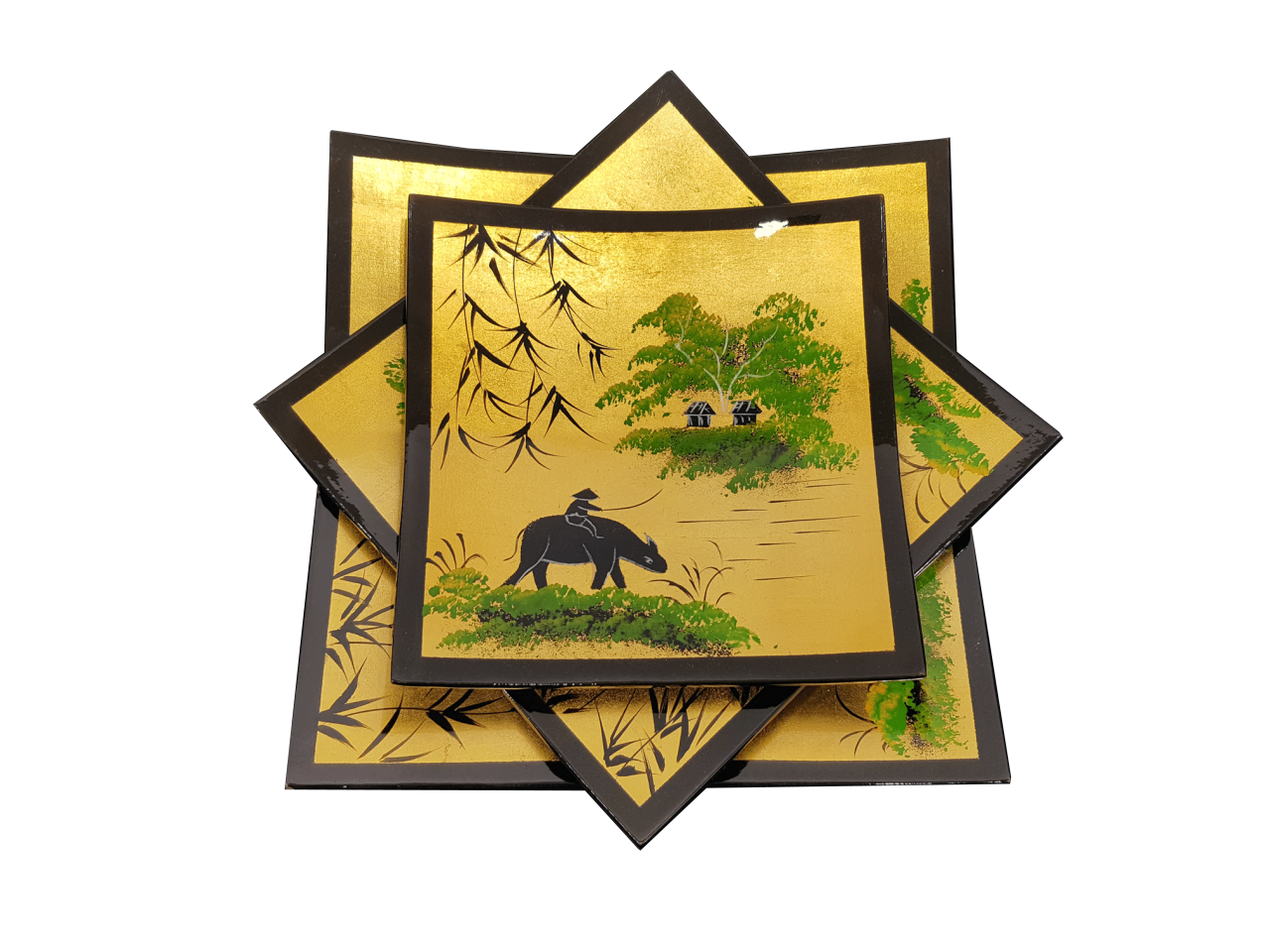 Ahşap Üzerine Lake Cilalı El Boyama Tabak Seti