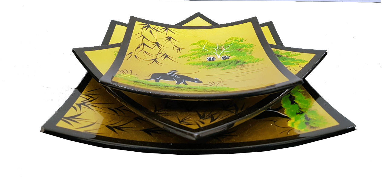 Misiny-Uzak Doğu El Boyama Sarı Tabak Seti -3’lü