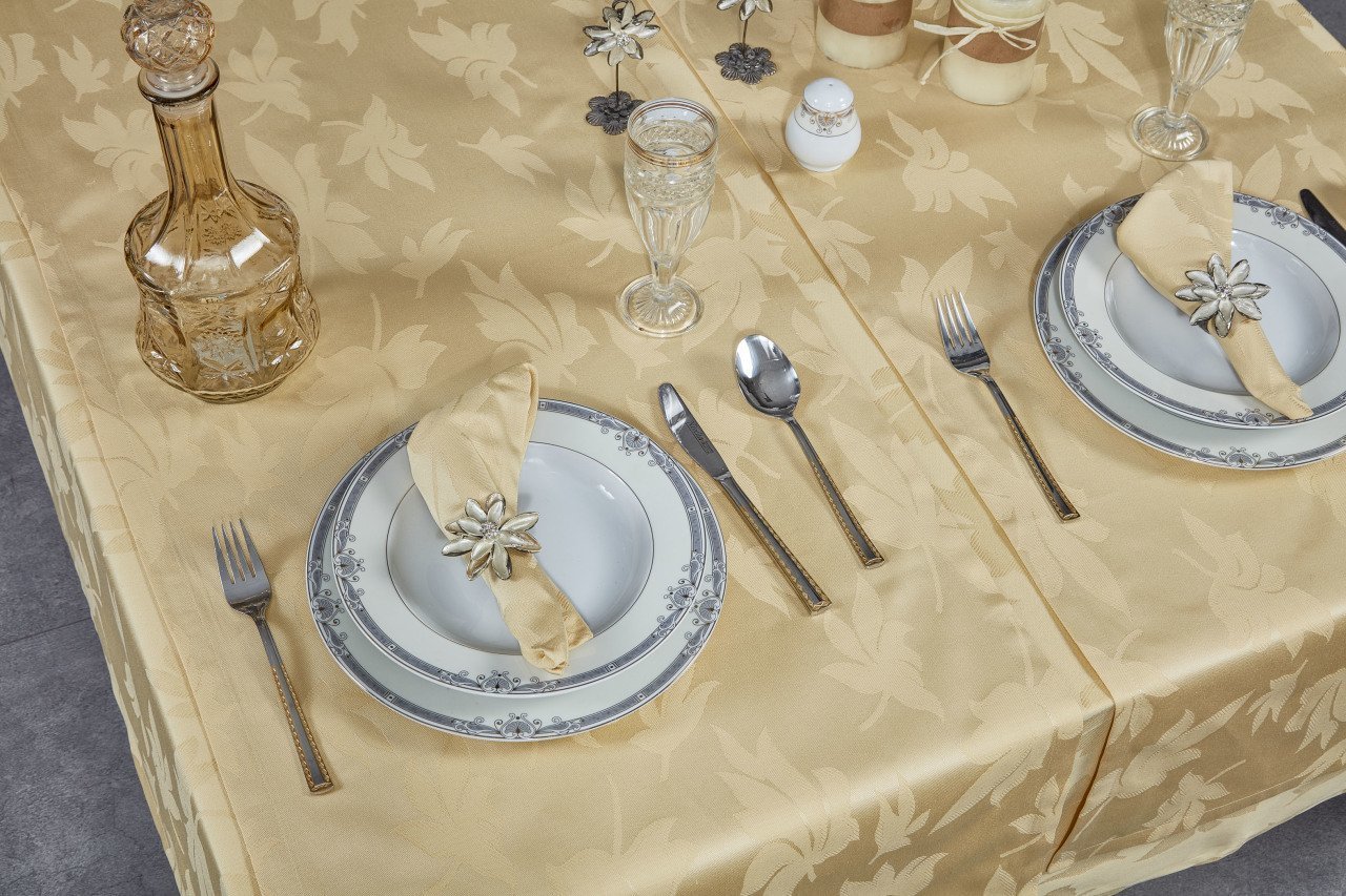 Misiny-Yaprak Desenli Sarı Masa Örtüsü